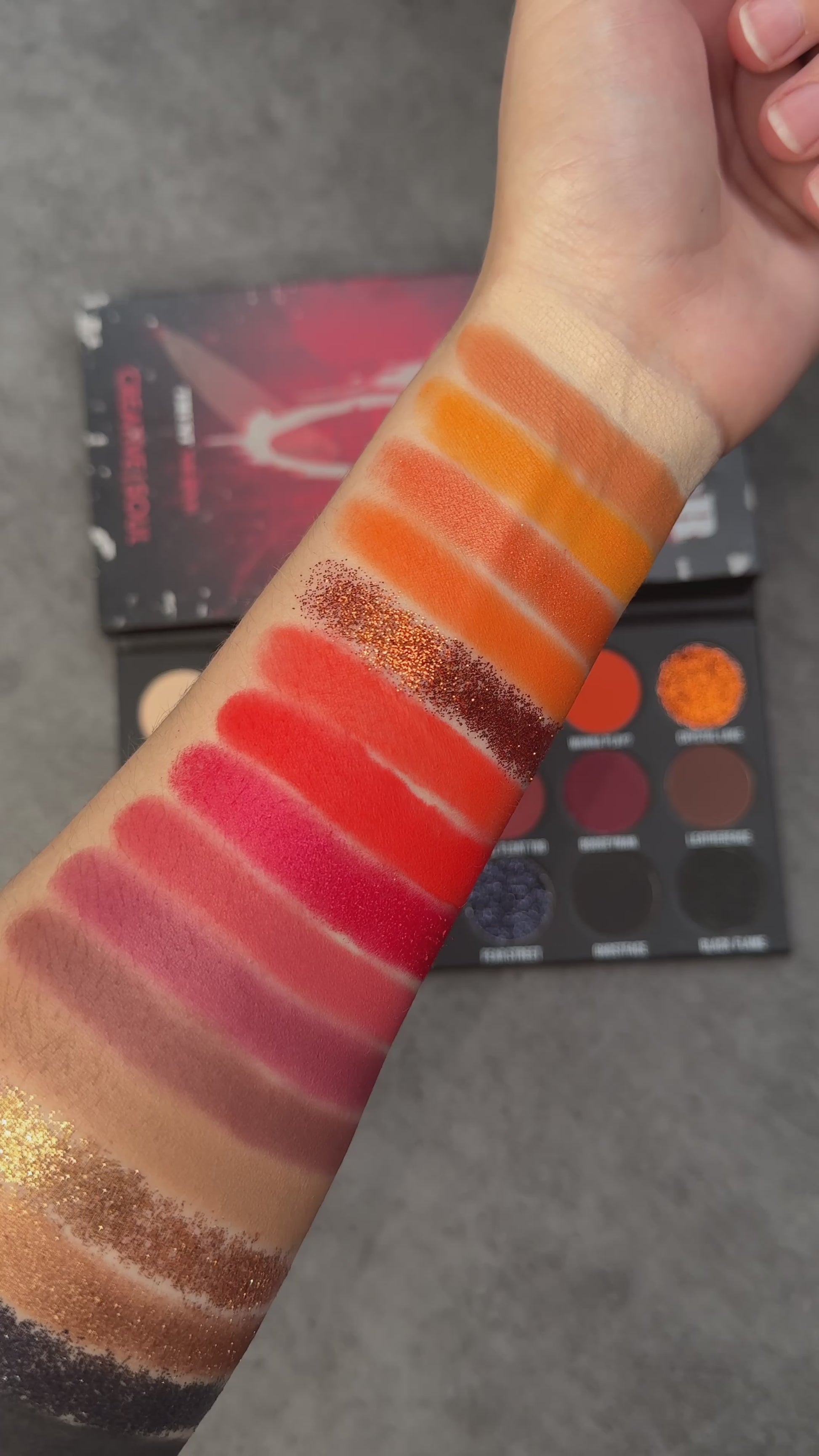 Slasher is a 90’s VHS horror movie inspired eyeshadow palette with bright reds, stunning oranges, subtle bronzes, smooth blacks, and more.